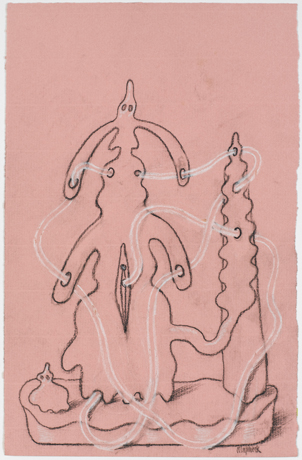 Tecnica: carboncino e gesso bianco su carta rosa