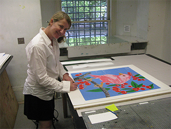 L'artista (Boston, 1974), in passato assistente di Alex Katz, crea immagini di pittura brillante che rappresentano uccelli e cerbiatti ritratti su uno sfondo di fiori, erba, rami e cieli che sembrano una confusa carta da parati. La combinazione di fiori fantasiosi di vibranti colori e dolci sfondi monocromatici, in composizioni dense di significato, evoca l'estetica di cartoline d'auguri. I suoi dipinti, tratti da una realtà verosimile, sono comunque di struttura concettuale: si rifanno infatti, per la serialità dell'immagine, alla Pop Art, ed in particolare a Warhol.