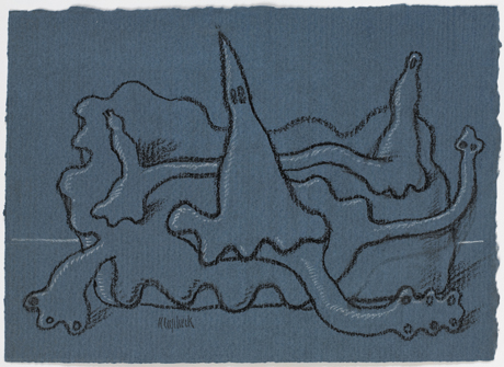 carboncino e gesso bianco su carta grigio scura